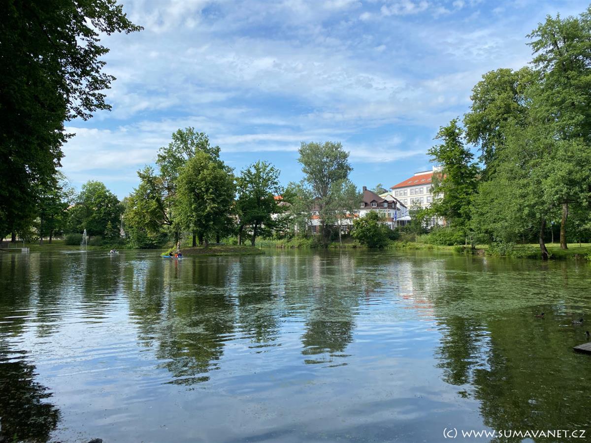 Mercandinovy sady, molo rybníka → Sady Mistra Jana Husa → Židovský hřbitov → Křesťanský vrch → Šibeniční vrch → Železniční nádraží Klatovy → Kostel sv. Martina na Hůrce → Mercandinovy sady